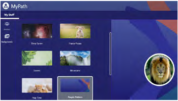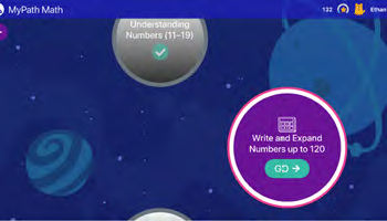 The K–2 learning experience includes larger buttons, icons, and action items to support early learners. It also includes audio supports for nonreaders. Students earn stars with ageappropriate rewards, and they can unlock new sidekicks and backgrounds to customize their experience.