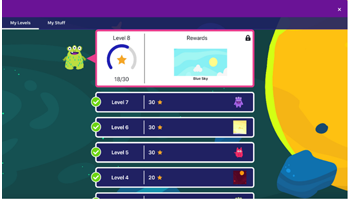 The middle school experience continues to adjust and adapt for older students with new backgrounds and sidekicks designed specifically for them. They will continue to earn stars and level up by completing lessons.