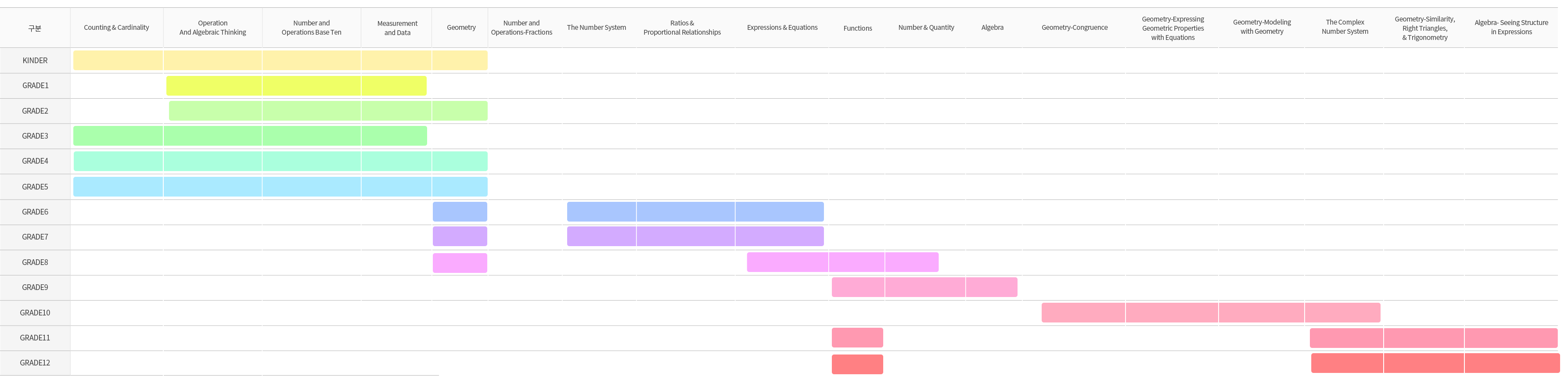 비판적으로 독서하는 문해력과 Math 영역에서 요구하는 학년별 학습목표인