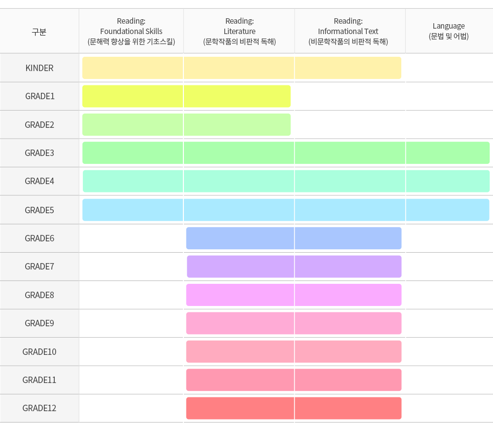 ① 미국학년으로 중등6학년에서 고등12학년 수준에 해당하는 문학, 비문학 작품을 비판적인 읽고,